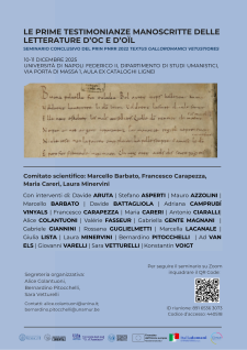Convegno “Le prime testimonianze manoscritte delle letterature d’oc e d’oïl”, seminario conclusivo del PRIN PNRR 2022 Textus Galloromanici Vetustiores (Università di Napoli “Federico II”, 10-11 dicembre 2025)