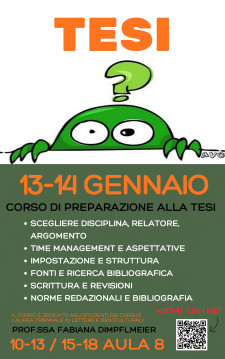Il corso può essere seguito anche on-line al seguente link: Corso preparazione tesi | Partecipazione alla riunione | Microsoft Teams