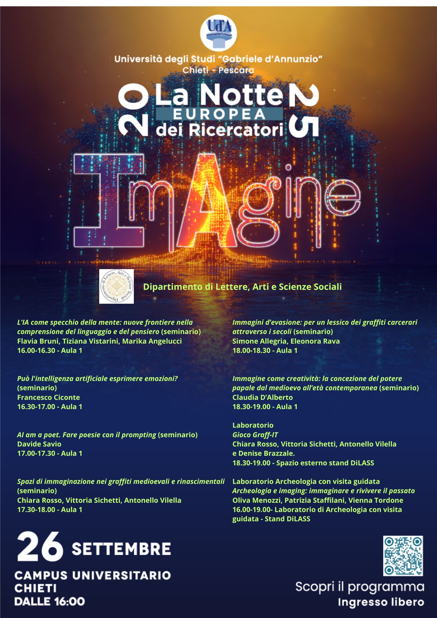 Eventi del DiLASS per "La Notte Europea dei Ricercatori" - venerdì 26 settembre ore 16:00, aula 1