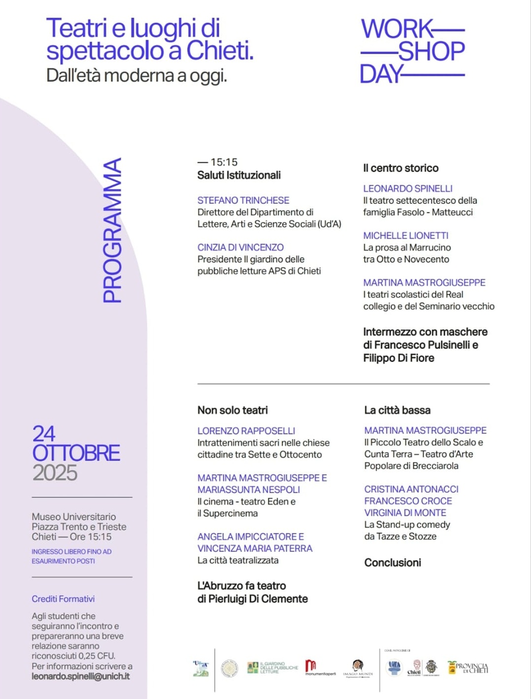 Workshop "Teatri e luoghi di spettacolo a Chieti. Dall'età moderna a oggi" - Venerdì 24 ottobre ore 15:15, Museo Universitario